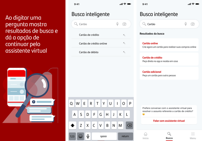 O objetivo era criar um serviço de busca inovador para um app bancário, integrando inteligência artificial de forma transparente e útil ao usuário. O desafio central era equilibrar inovação tecnológica com usabilidade, garantindo que a IA fosse percebida como facilitadora e não como substituta indesejada do atendimento humano.