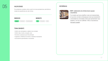 Estratégias de aproximação e engajamento, com ações que convidam a população local a conhecer e ocupar o espaço interno do museu.
