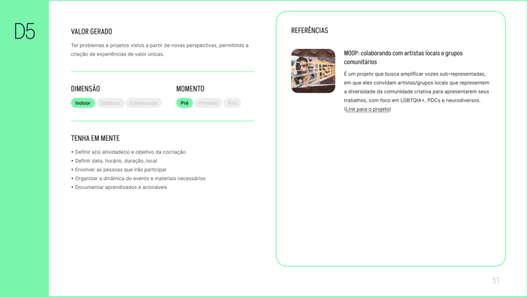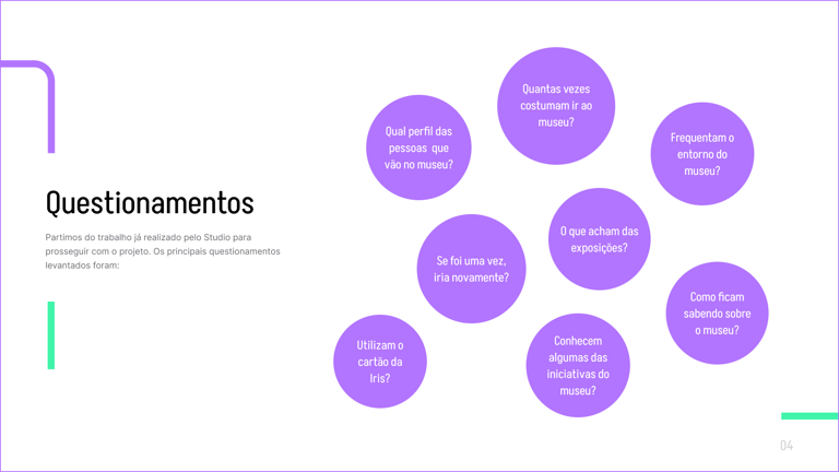 Pesquisa multidimensional: Realizei pesquisas com visitantes, não-visitantes e turistas, identificando percepções, barreiras de acesso e expectativas. Os testes de conceito e acessibilidade trouxeram insights sobre como tornar o espaço mais inclusivo e atrativo.