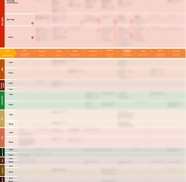 Percebi rapidamente que, apesar do volume de informações, faltava uma visão integrada do processo. Decidi, então, construir um mapa a partir de entrevistas em profundidade com stakeholders de diferentes áreas. O objetivo era entender como cada setor impactava a jornada do cliente, quais eram os principais riscos e onde estavam as oportunidades de melhoria.