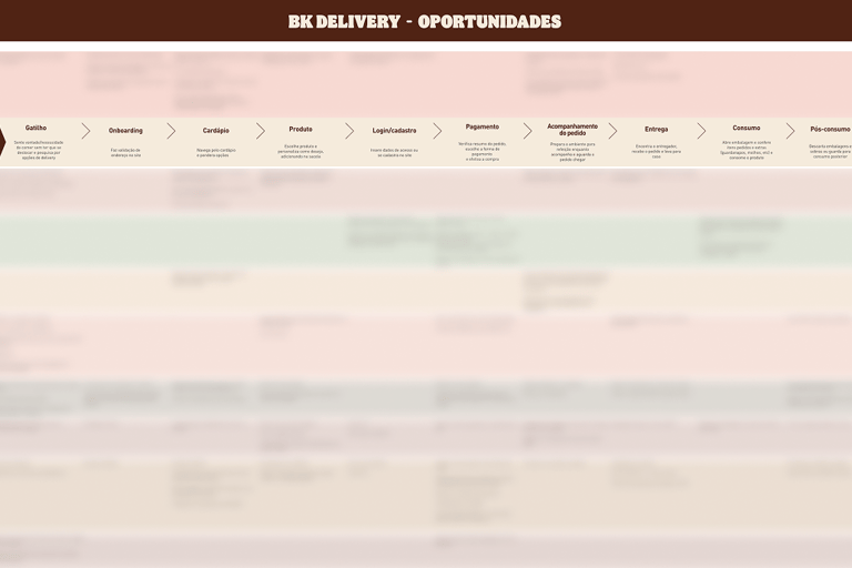 Jornada com Oportunidades: Mantendo a mesma estrutura, mas agora com sugestões de melhoria para o delivery e indicações de como as demais áreas poderiam se envolver para potencializar resultados.